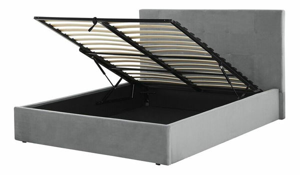 S touto postelí bude vaše ložnice vypadat moderně, ale zároveň útulně. Rám postele je vyroben z odolného materiálu a je čalouněný sametovou látkou jemnou na dotek. Postel nabízí praktický úložný prostor pod lamelovým roštem, který je ideální pro uložení polštářů a ložního prádla. Díky čistým liniím, jednoduchému designu čela postele a šedé barvě ji snadno sladíte s mnoha styly interiérového zařízení.