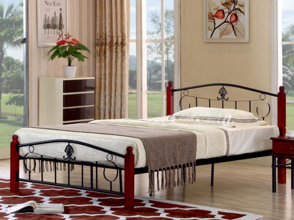 Manželská postel Magenta je v provedení kov černé barvy a je doplněna o dřevěné nohy v odstínu tmavý dub. Dodáváme v demontu.