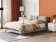 Vylepšete vzhled své ložnice touto elegantní postelí. Díky sametovému čalounění s jemným povrchem se hodí k mnoha stylům interiérového zařízení, nejlépe však bude ladit s interiéry ve skandinávském a vintage stylu. Hrubé čalouněné polštáře připevněné k čelu postele pomocí zipu zvyšují komfort při používání. Rám postele stojí na černých nohách, které krásně kontrastují s barvou čalounění.