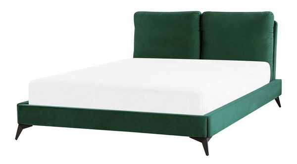 Vylepšete vzhled své ložnice touto elegantní postelí. Díky sametovému čalounění s jemným povrchem se hodí k mnoha stylům interiérového zařízení, nejlépe však bude ladit s interiéry ve skandinávském a vintage stylu. Hrubé čalouněné polštáře připevněné k čelu postele pomocí zipu zvyšují komfort při používání. Rám postele stojí na černých nohách, které krásně kontrastují s barvou čalounění.