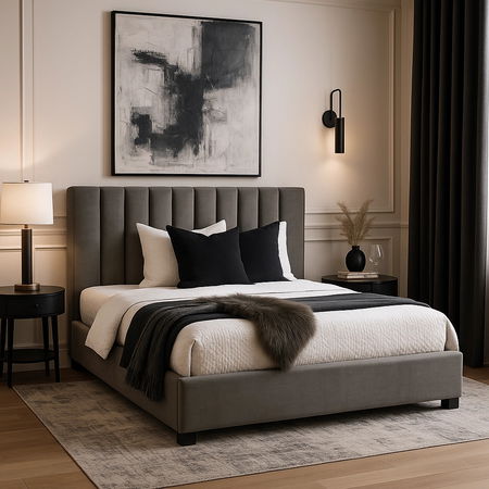 Manželská postel 140 cm Merecida (šedá) (s roštem) (s úl. prostorem)
