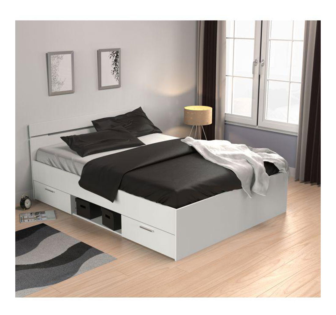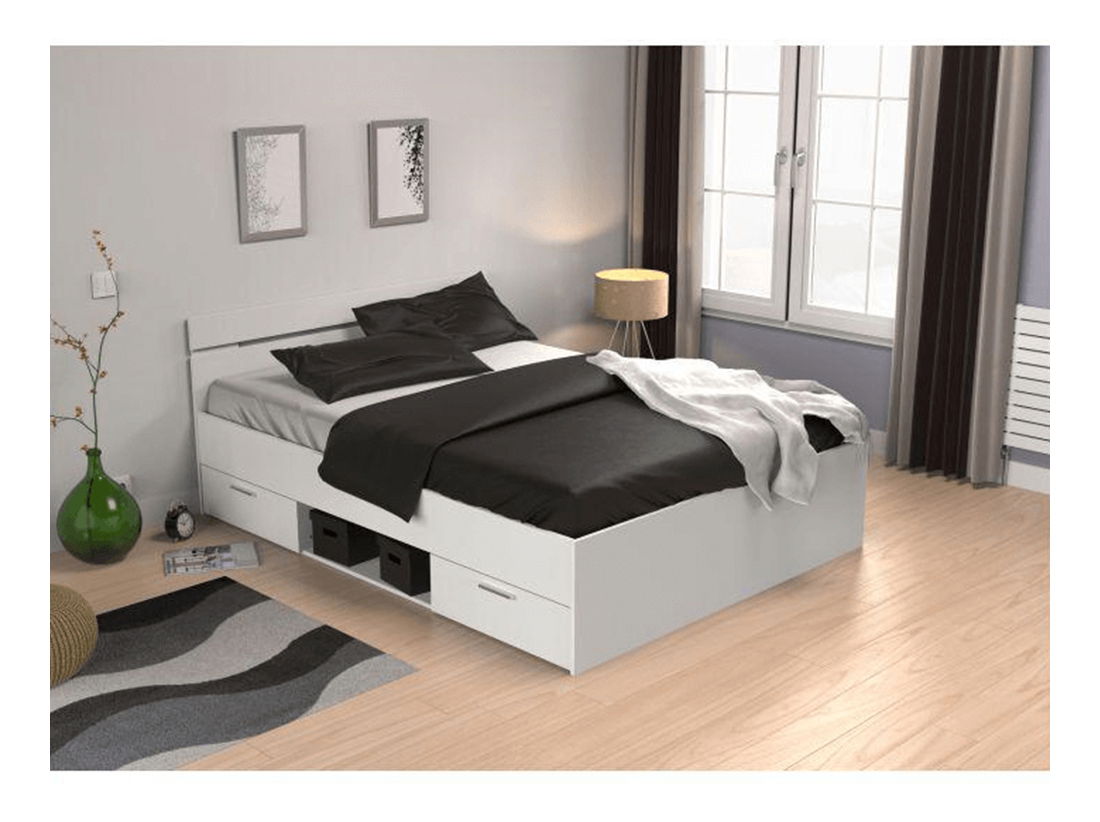 Elegantní postel Myriam s nádechem šarmu, je jako stvořená pro praktický domov. Své místo najde určitě v ložnici, ale také ve studentských či dětských pokojích. Využijte prostor v pokoji efektivně. Prostorná postel Myriam s plochou na spaní 140x200 cm disponuje dvěma šuplíky a otevřeným odkládacím prostorem, které se nacházejí pod postelí. Šuplíky si umíte namontovat z pravé nebo levé strany. Vejdou se tam peřiny, hračky a vše, co nemusí zabírat místo ve skříni. Oblíbený, pevný a odolný materiál DTD laminovaná v elegantním provedením bílá šikovně zapadne do všech interiérů, kde navodí stylové teplo a kouzlo domova.
