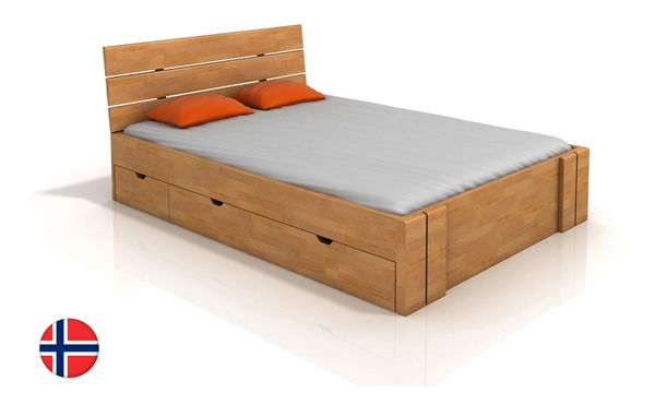 Manželská postel 140 cm Naturlig Tosen High Drawers (buk) (s roštem)
