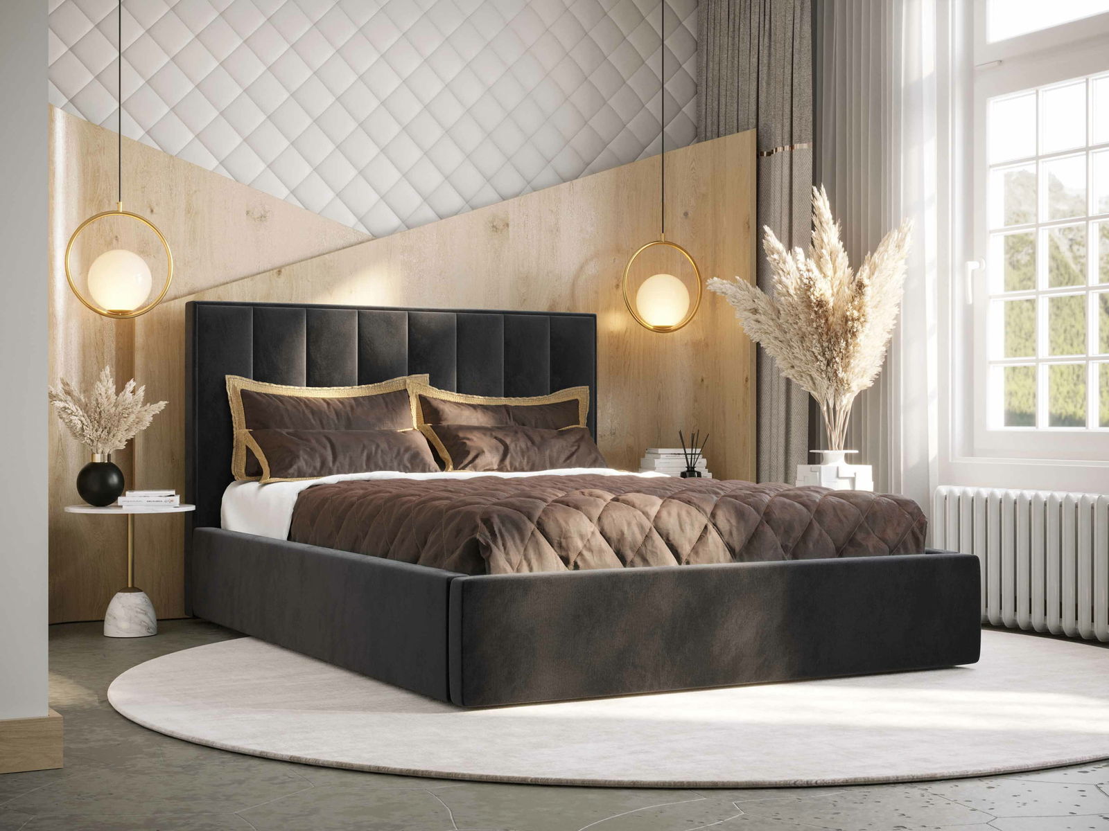 Manželská postel 140 cm Ocie (černá) (s roštem a úložným prostorem)
