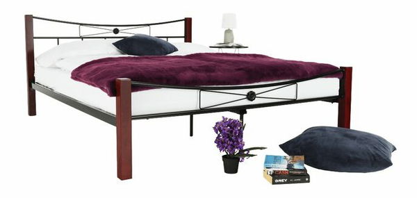 Luxusní kovová postel v klasickém stylu působí velmi honosně navzdory svému jednoduchému designu. Kovová konstrukce černé barvy je doplněna o nohy v barvě dřeva ořech. Plocha lůžka je 140 x 200 cm a je dodávána s kvalitním lamelovým roštem. Matraci si můžete vybrat a přiobjednat z nabídky našeho internetového obchodu. Doporučujeme koupit matraci vcelku (nedělený), na celou šířku postele.