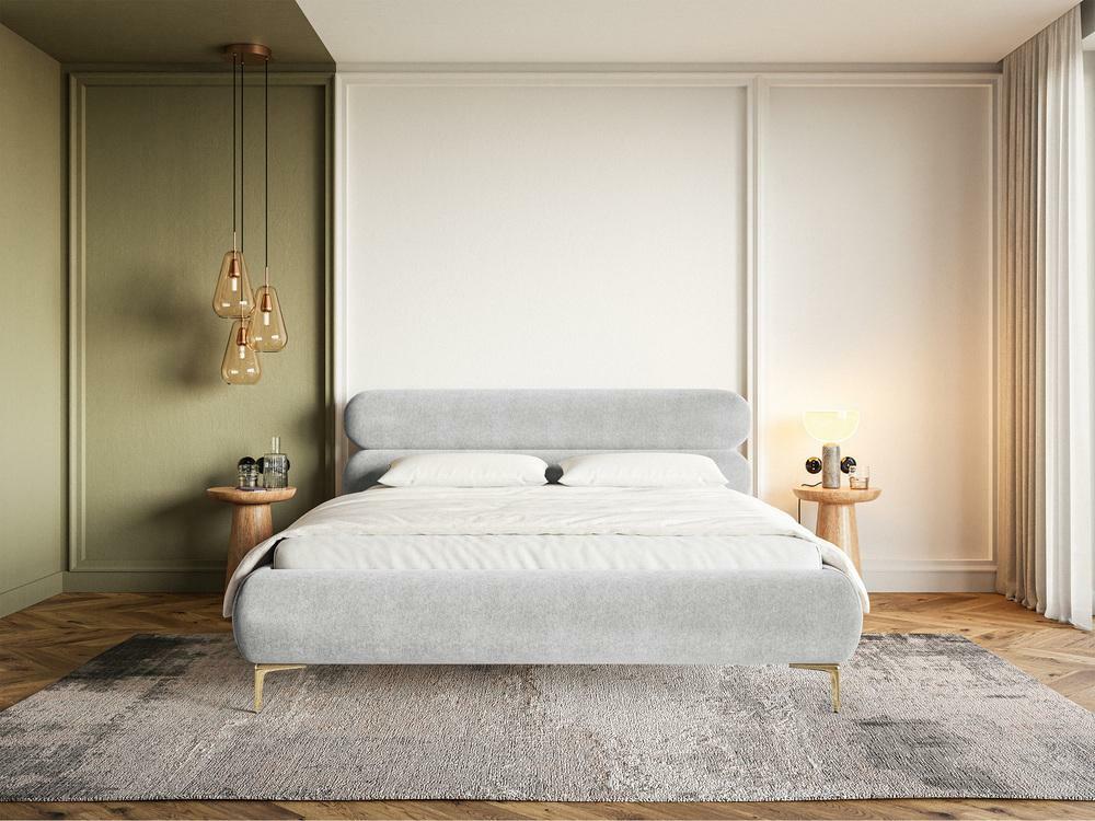 Manželská postel 140 cm Rirri 140 (s roštem) (s úl. prostorem) (světle šedá + zlatá)