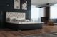 Elegantní manželská postel Saturio s dekorativním šitím na opěrce hlavy. Vytvoří ve Vaší ložnici krásný romantický prostor. Postel se vyznačuje vysokým čelem a širokými válcovými kovovými nožkami.