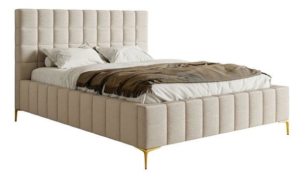 Manželská postel 140 cm Sheldona 140 (s roštem) (s úl. prostorem) (béžovošedá + zlatá)