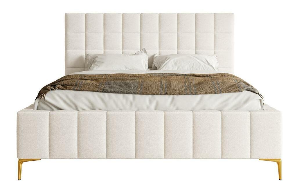 Manželská postel 140 cm Sheldona 140 (s roštem) (s úl. prostorem) (krémová + zlatá)