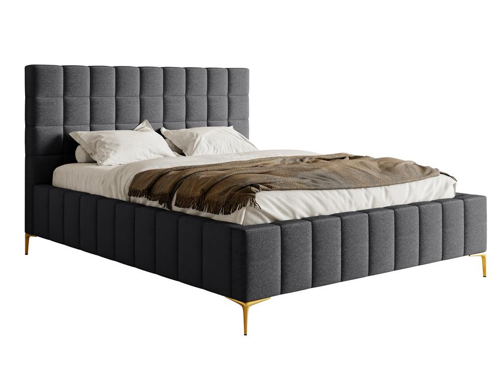 Manželská postel 140 cm Sheldona 140 (s roštem) (s úl. prostorem) (tmavě šedá + zlatá)
