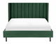 Elegantní postel s moderním designem a vysokým opěradlem. Obdélníkový tvar postele může na první pohled působit klasickým dojmem, ale díky svislému prošívání na čele vypadá moderně a stylově. Celá postel je čalouněna sametovou látkou v tmavě zelené barvě, která jí dodává sofistikovaný vzhled. Malé nohy jsou sice nenápadné, ale zaručují stabilitu a pevnost celé konstrukce.