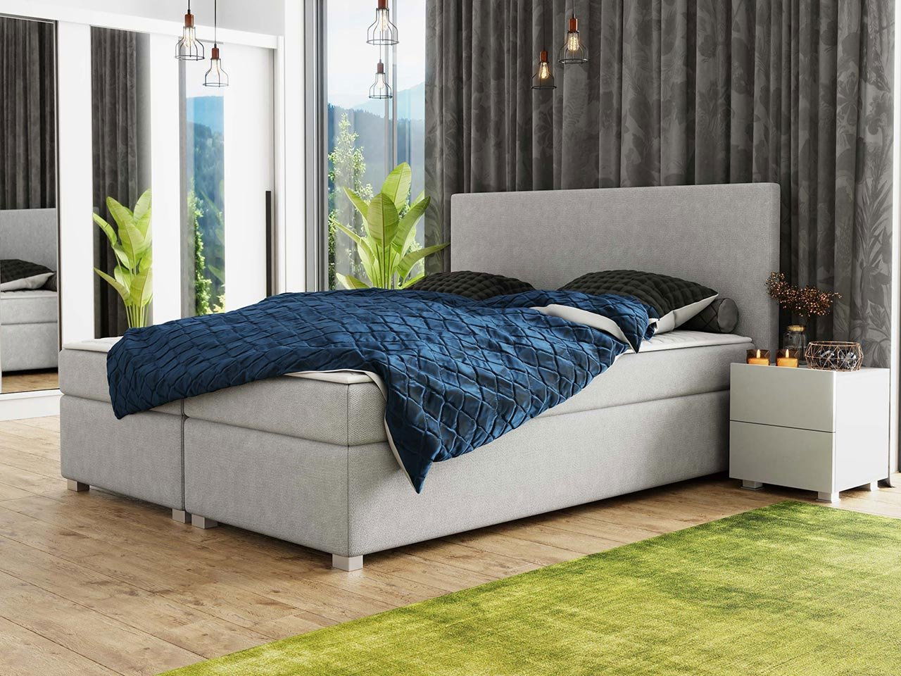 Kontinentální postel je ideální volbou pro ty, kteří hledají pohodlí a styl. Kontinentální postel vám poskytne blažený spánek a regenerační odpočinek po náročném dni. postele Gilda je i čalouněná opěrka hlavy. Zvýrazňuje estetiku nábytku az praktického hlediska poskytuje zádům měkkou oporu při večerním čtení knihy nebo sledování filmu před usínáním. délka: 207 cm, šířka: 165 cm, výška: 107 cm, plocha na spaní: 160 x 200 cm 180: délka: 207 cm, šířka: 185 cm, výška: 107 cm, plocha na spaní: 180 x 200 cm Provedení: rám: 16 mm borové dřevo, profil 3x5 cm opěradlo: dřevotříska 18 mm + pěna T25 plastové nožičky postel není volně stojící v prostoru postel nedisponuje úložným prostorem spodní část postele: pružiny bonell + pěna T25 hlavní matrace: pružiny bonell + pěna T25, stupeň tvrdosti vrchní část matrace (vrchní deska Mandula): středně tvrdý tloušťka 2,5 cm prošívaný potah topper vyrobený z nejkvalitnějších hypoalergenních materiálů: antibakteriální a protiplísňový polyesterový úplet 200 g/m2 20 mm PU pěna: vyznačuje se vysokým stupněm hustoty deformace, vysokým komfortem použití 100 g netkaná textilie z polyesterového vlákna s vysokou vláknitostí 35 g/m2 rouno vyrobené z vysoce kvalitní netkané textilie 82 g/m2 polyesterové mikrovlákno: prodyšné, vysoce absorpční, antialergické, odolné vůči prachu a roztočům zabraňují pohybu matrace ozdoba: oříznutá páskou po obvodu oboustranné - obě strany jsou použitelnou plochou matraci se doporučuje otáčet každé 2 až 3 měsíce pratelné na 30°C Možnost nákupu produktů z nabídky: Stropní svítidlo Workshop VI 9631 Noční stolek Bralani BR06 Záruka: 24
