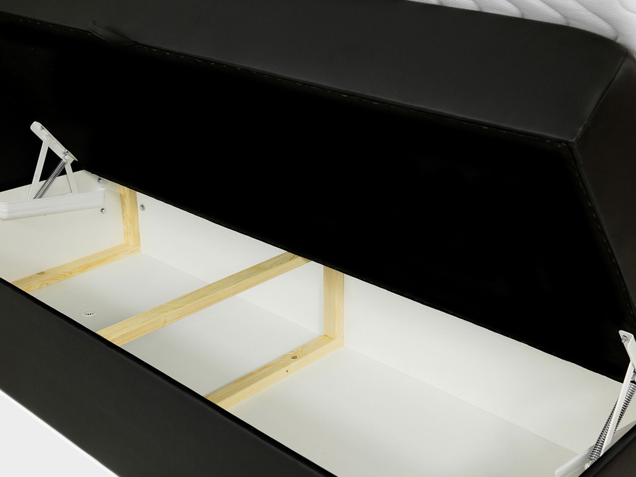 postel se dvěma kontejnery na ložní prádlo jako standard, na obou stranách postele, zvedání obou částí díky pružinám, což činí obsluhu velmi jednoduchou a lehkou,