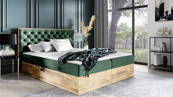 Kontinentální postel je ideální volbou pro ty, kteří hledají pohodlí a styl. Elegantní kontinentální postel se 2 úložnými prostory Maradis 3 je základem pohodlného odpočinku. Pohodlí během spánku zajišťuje několik vrstev matrace včetně topperu. Ten chrání hlavní matraci před poškozením, čímž prodlužuje její životnost a spolehlivost. Elegantní vzhled postele tvoří pečlivě vybrané komponenty. Základnu ve vzorech dřeva doplňují čalouněné vložky. Čalounění matrace a ozdobně prošívaný podhlavník jsou prvky, které podtrhují výjimečný vzhled celého nábytku. Ze široké škály barev čalounění si můžete vybrat tu, která se nejlépe hodí do interiéru vaší ložnice. Další výhodou postele Madaris 3 jsou její 2 úložné prostory. Prostory, které jsou k dispozici pod matrací, poskytují vynikající úložný prostor pro polštáře, přikrývku a náhradní deky pro chladnější večery. Dostupné rozměry: 120: délka: 211 cm, šířka: 130 cm, výška: 105 cm, plocha na spaní: 120 x 200 cm, rozměry jednoho úložného prostoru (postel má dva): délka: 197 cm, šířka: 57 cm, výška: 25 cm, 140: 105 cm, plocha na spaní: 140 x 200 cm, rozměry jednoho úložného prostoru (postel má dva): délka: 197 cm, šířka: 67 cm, výška: 25 cm, 160: délka: 211 cm, šířka: 170 cm, výška: 105 cm, plocha na spaní: (postel má dva): délka: 197 cm, šířka: 77 cm, výška: 25 cm, 180: délka: 211 cm, šířka: 190 cm, výška: 105 cm, plocha na spaní: 180 x 200 cm, rozměry jednoho úložného prostoru (postel má dva): délka: 1 200: délka: 211 cm, šířka: 210 cm, výška: 105 cm, plocha na spaní: 200 x 200 cm, rozměry jednoho úložného prostoru (postel má dva): délka: 197 cm, šířka: 97 cm, výška: 25 cm Provedení: Úložný prostor: 16 mm mm surová deska + vysoce elastická pěna T25, má dva kontejnery na lůžkoviny - postel má standardně dva kontejnery na lůžkoviny na obou stranách postele, přičemž obě části se zvedají díky pružinám, což velmi usnadňuje manipulaci, hlavní matrace: pružiny typu bonell + vysokoelastická pěna T25, stupeň středně pevná, na samém vrchu - vrchní matrace (Mandula topper): středně pevná, tloušťka přibližně 2,5 cm, prošívaný potah, topper vyrobený z hypoalergenních materiálů nejvyšší kvality: antibakteriální a protiplísňová polyesterová pletenina s gramáží 200 g/m² přiměřenou tvrdostí a pružností, nízkou náchylností k deformaci, vysokým komfortem používání, vysoce nadýchané rouno 100 g/m² z polyesterového vlákna, fleec s gramáží 35 g/m² vyrobený z vysoce kvalitní netkané textilie, polyesterové mikrovlákno s gramáží 82 g/m²: bariéra proti prachu a roztočům, topper má 4 pevné upevňovací gumy, které zabraňují pohybu matrace, lem: po obvodu olemovaný páskou, oboustranné - obě strany poskytují použitelný povrch, doporučuje se matraci otáčet každé 2-3 měsíce, lze prát při 30˚C nožičky: plastové, postel není volně