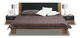 Elegantní manželská postel o šířce matrace 160 cm v provedení ořech a černé barvy, která je použita na většině čela postele. Postel je bez úložného prostoru jsou k ní automaticky dodávány 2 noční stolky s dvěma zásuvkami, z nichž je horní v černé barvě.