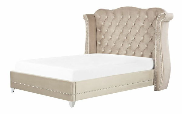 Tato elegantní postel přemění každou ložnici na luxusně zařízený prostor. Rám postele s vysokým čelem je čalouněný sametovou látkou, kterou doplňuje klasické prošívání. Díky svému designu je dokonalým kusem nábytku do ložnic zařízených v elegantním nebo tradičním stylu. Okraje postele zdobí kovové lemování a lamelový rošt poskytuje stabilní oporu matraci a zajišťuje správné proudění vzduchu.