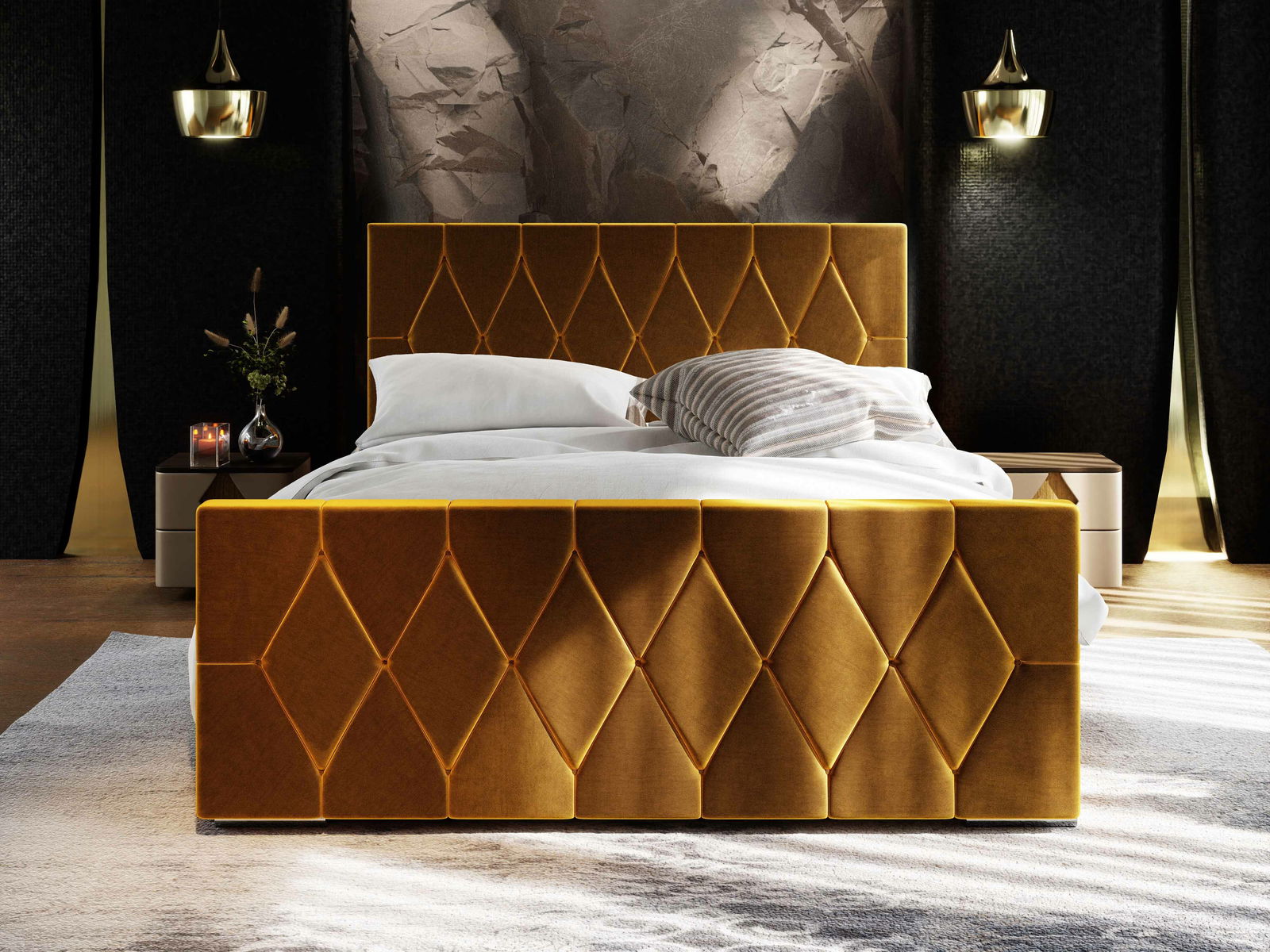 Manželská postel 160 cm Alex (zlatá) (s roštem a úložným prostorem)