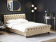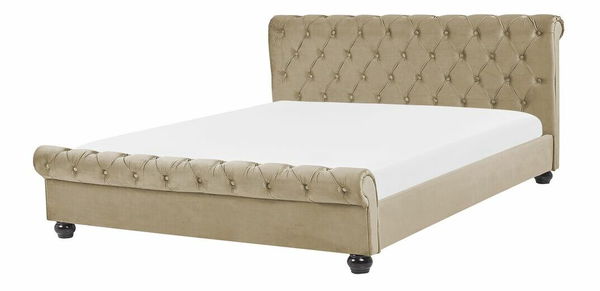 Vylepšete svou ložnici touto jedinečnou luxusní postelí. Elegantně zaoblené čelo a nízká část u nohou dotváří stylovou siluetu rámu. Postel je čalouněna jemnou béžovou sametovou látkou, která je nenáročná na údržbu a příjemná na dotek. Ozdobné prošívání s kulatými knoflíčky dokonale doplňuje design tohoto výjimečného kusu nábytku. Tato postel je ideální do interiéru v moderním, retro a vintage stylu a vynikne také v ložnicích zařízených v tradičním anglickém stylu.