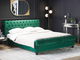 Vylepšete svou ložnici touto jedinečnou luxusní postelí. Elegantně zaoblené čelo a nízká část u nohou dotváří stylovou siluetu rámu. Postel je čalouněna jemnou zelenou sametovou látkou, která je nenáročná na údržbu a příjemná na dotek. Ozdobné prošívání s kulatými knoflíčky dokonale doplňuje design tohoto výjimečného kusu nábytku. Tato postel je ideální do interiéru v moderním, retro a vintage stylu a vynikne také v ložnicích zařízených v tradičním anglickém stylu.