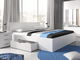 Manželská postel, která v korpusu ukrývá praktické zásuvky, které mohou sloužit k uložení ložního prádla, polštářů a peřin. Zásuvky jsou umístěny na boku postele.