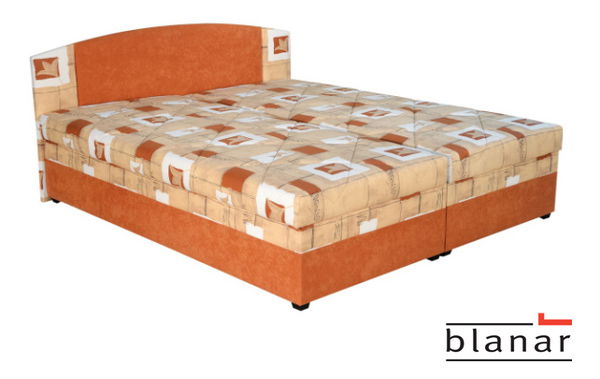 Manželská postel s elastickou PUR pěnou ALENA uloženou na polohovacím lamelovém roštu s polohováním hlavy a nohou. Přístup do úložného prostoru od nohou. Doporučená nosnost do 105 kg.