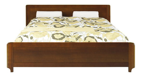 Klasická manželská postel z přírodního dřeva se zaoblenými hranami rámu a ozdobně vyřezanými nohama. Postel je dodávána bez úložného prostoru, roštu a matrace.