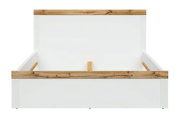 Manželská postel v kompaktním rozměru nabízí nadprůměrný standard a komfort do každé ložnice. Barevná kombinace bílé s přírodním dekorem dubu Wotan dokonale prosvětlí vaši ložnici a večer z ní vytvoří příjemné a útulné místo i pro nejnáročnějšího zákazníka. Cena neobsahuje rošt a matrace, ale víte si je přiobjednat z naší nabídky. Materiál: Nábytková deska.