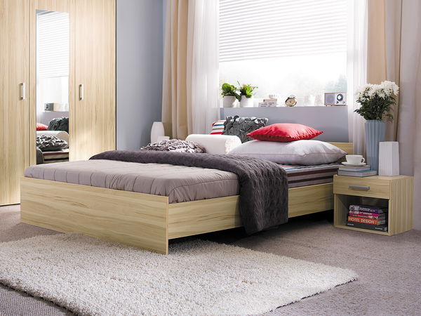 Moderní sektorová sestava Vám zaručí nadčasové zařízení Vaší ložnice. Nacházejí se v ní čtyři prvky, které svojí funkčností vytvoří příjemný prostor pro Váš odpočinek. Máte na výběr ze tří barevných provedení, od světlé barvy dřeva až po tmavou.