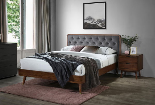 Manželská postel Callie 160 o rozměrech 160 x 208 cm a výšce 102 cm je vyrobena z kvalitních materiálů, jako je sametová látka, MDF, přírodní dýha a masivní kaučukové dřevo. Součástí postele je také rošt. Výška nožiček je 23 cm, výška od země po horní okraj postele je 37 cm, výška boční strany postele je 14 cm, výška od země po rošt je 29 cm a výška od roštu po horní okraj postele je 8 cm. Tato postel v ořechově šedé barvě bude skvělým doplňkem každé ložnice a poskytne vám pohodlný a kvalitní spánek.
