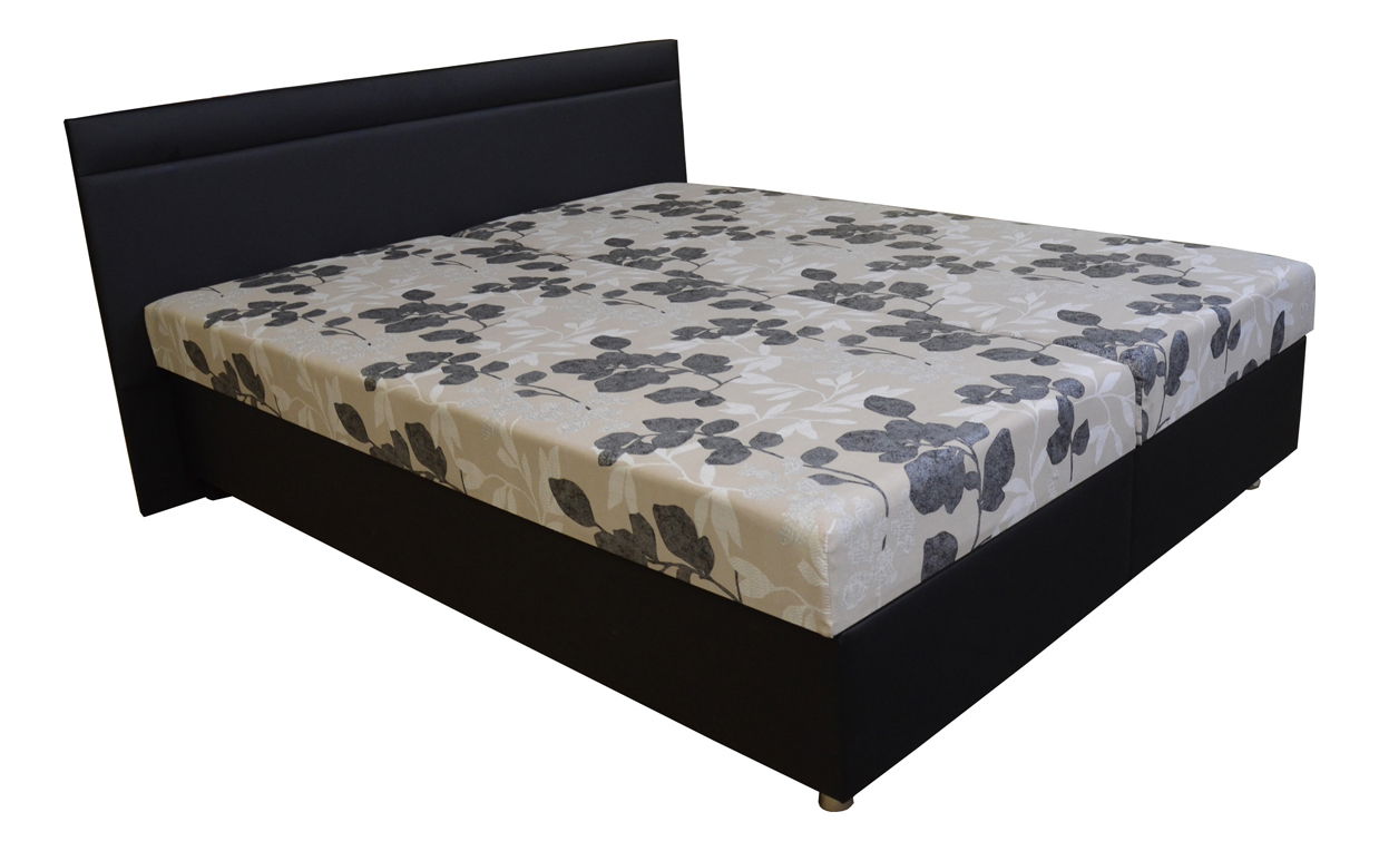 Manželská postel s matracemi a úložným prostorem. Praktický úložný prostor šetří místo v ložnici, stačí jednoduše vyklopit matraci. Korpus manželské postele je z pevné dřevotřískové desky a úložný prostor je odvětrán a uprostřed vyztužený. Postel je postavena na 3 cm vysokých kluzácích. Matrace jsou čalouněné, osazeny napevno (neodnímatelné) a jsou spojeny s korpusem postele kováním, které umožňuje pohodlný přístup k úložnému prostoru. Dodávané s pružinovou matrací, nosnost 110 kg.