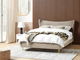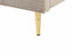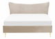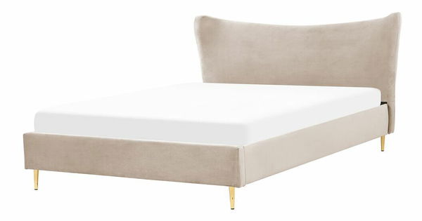 Tato stylová moderní postel dodá vaší ložnici trendový a elegantní vzhled. Rám a vysoké čelo jsou čalouněny na dotek příjemnou sametovou látkou v nádherném odstínu béžové barvy. Tenké zlaté nohy podtrhují celkový design a čalounění postele, zatímco dřevěný lamelový rošt zlepšuje pohodlí během spánku.
