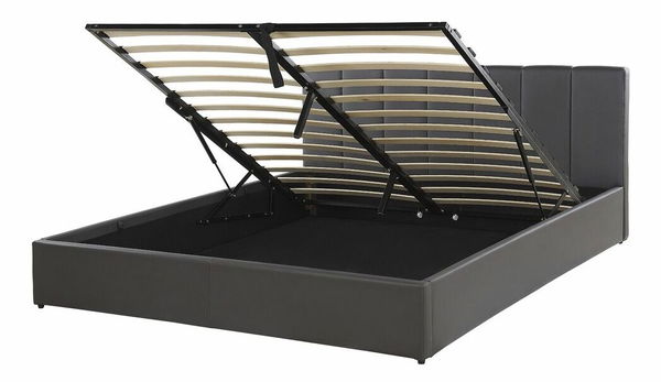 Čalouněná postel se zvedacím lamelovým roštem je chytrou volbou do každé ložnice. Díky úložnému prostoru po celé délce postele, který můžete využít k odkládání ložního prádla, oblečení a podobně, vám umožní plně využít veškerý prostor v ložnici. Postel je nejen funkční, ale také stylová a dobře se kombinuje s různými styly interiérového zařízení. Jednobarevné čalounění z umělé kůže s jednoduchým detailem v podobě svislého prošívání na čele postele jí dodává moderní a minimalistický vzhled.