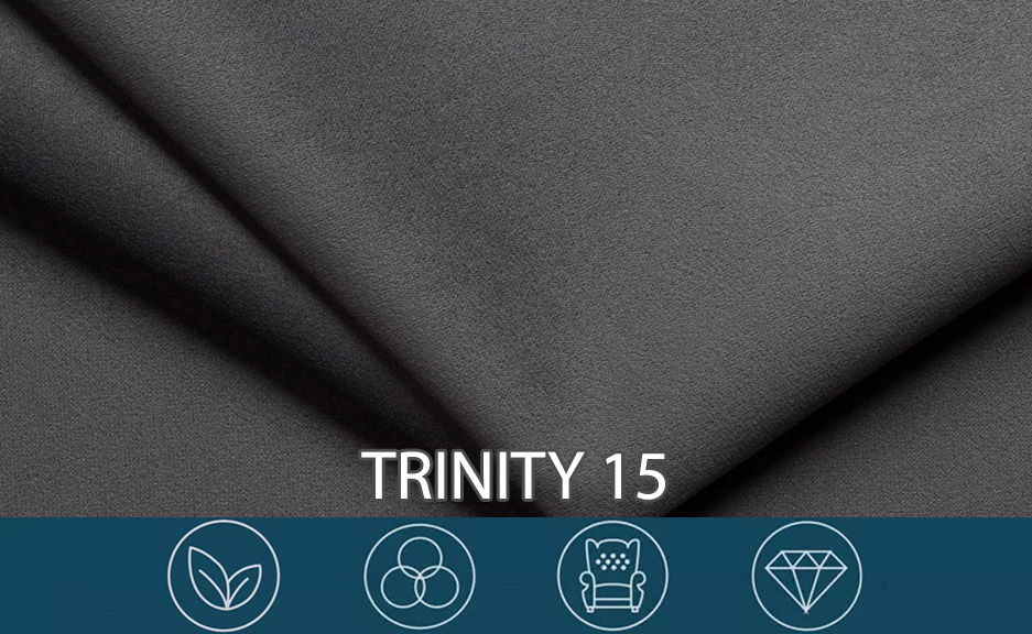 Tkanina Trinity je 100% polyesterová syntetická textilie, měkká, odolná a pevná, bez viditelné struktury vláken. Je omezeně absorpční a odolná vůči žmolkování. Pečujte ji speciálními přípravky a jemným hadříkem, nepoužívejte mnoho vody a bělící přípravky.