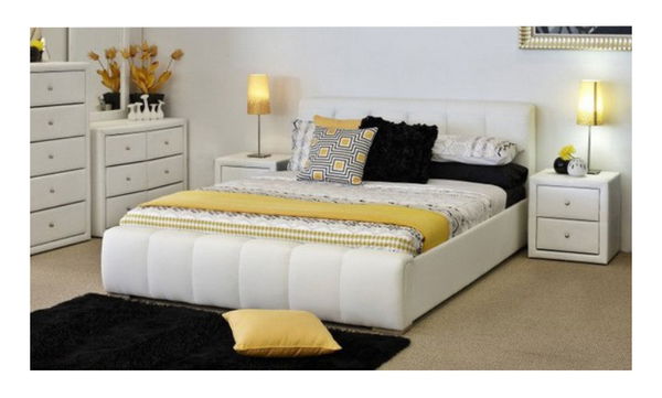 Moderní a luxusní vzhled Vás zaujme na první pohled. Spolu s postelí dodáváme i s lamelovým roštem. Postel je čalouněná bílou ekokůží. K posteli doporučuje dokoupit matraci a noční stolek, který si můžete vybrat z naší nabídky.