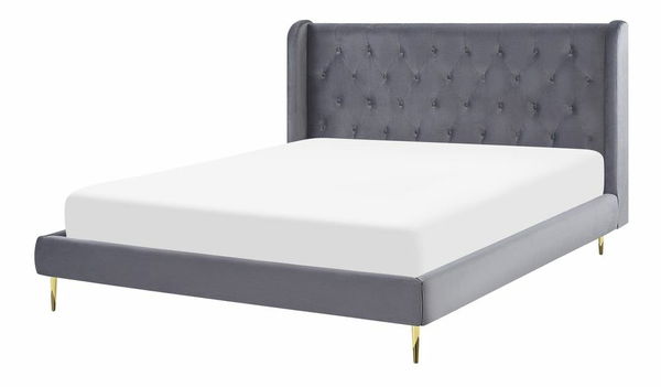 Vneste do své ložnice špetku glamour stylu prostřednictvím této stylové postele. Čalounění z kvalitního sametu je příjemné na dotek, působí elegantně a zároveň je velmi odolné. Šedé čalounění v kombinaci se zlatým kovovýma nohama vytváří poutavou kombinaci. Elegantní design postele podtrhuje vysoké prošívané čelo. Postel se dodává i se sadou roštů, které zajistí správnou polohu těla a postarají se o klidný spánek.