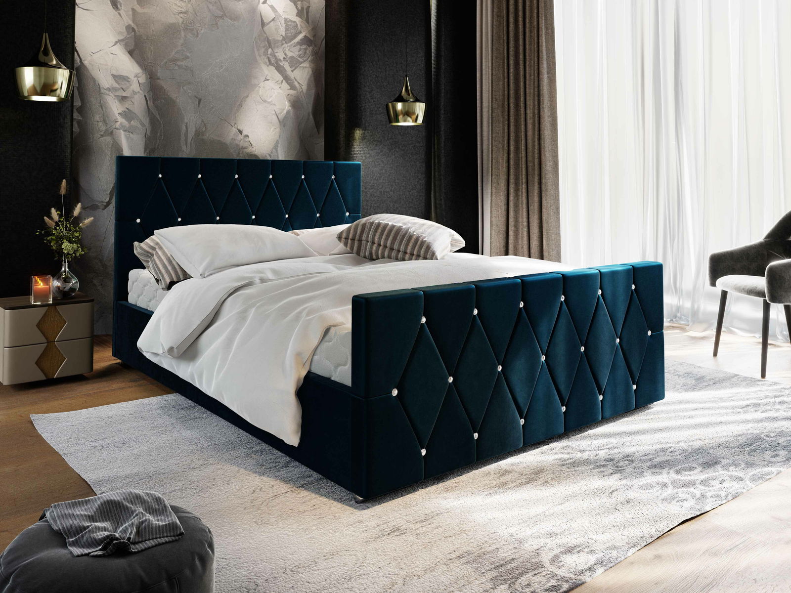 Manželská postel 160 cm Illa (tmavě modrá) (s roštem a úložným prostorem)