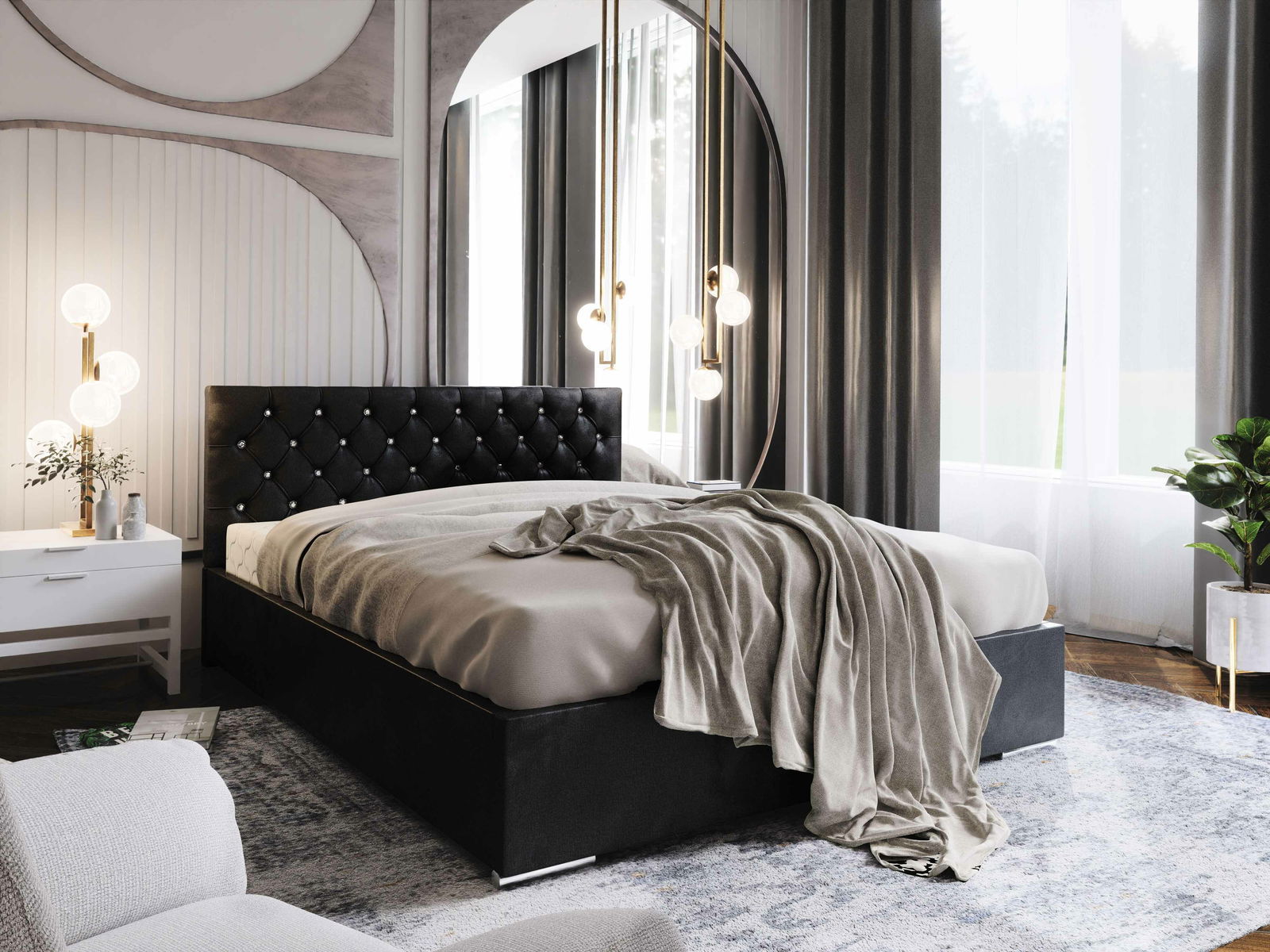 Manželská postel 160 cm Kerry (černá) (s roštem a úložným prostorem)