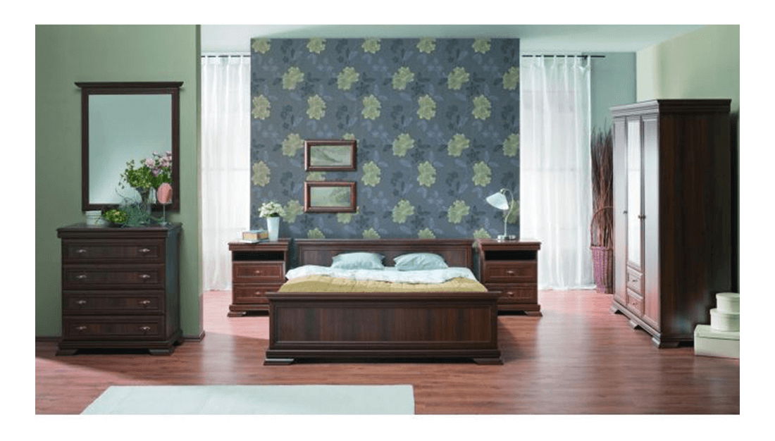 Manželská postel Kraz KLS o rozměrech 160x200 cm a barevným provedením Samoa king je ideální pro ty, kteří preferují rustikální nábytek. Postel má masivní ozdobné vyřezávané nožičky a je dodávána s roštem, avšak bez matrace. Nábytek Kraz je známý svým masivním vzhledem, tmavým provedením, ozdobnými lištami a kovovými úchyty. Postel je vyrobena z laminované DTD a MDF materiálu a má nosnost až 110 kg. Je dodávána v demontu a doporučuje se zakoupit matraci o minimální výšce 14 cm.