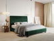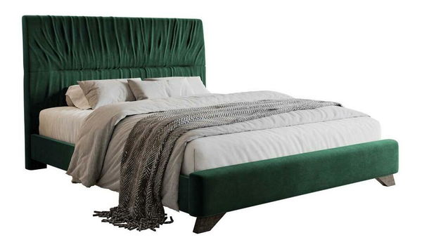 Sníte o nm uspořádání ložnice, ale nevíte, kde začít? Vyberte si vkusný model postele, se kterým si vytvoříte prostor, o jakém sníte! Čalouněná postel v tmavě zelené barvě bude perfektním doplňkem do interiérů zařízených v moderním nebo glamour stylu. Ozdobná opěrka hlavy s četnými volány dodává celé kompozici šarm a eleganci a na dotek mimořádně příjemné sametové čalounění zvyšuje pohodlí a vysoký komfort používání. Čelo postele je vyplněno nábytku pěnou, díky čemuž je potěšením opřít si o něj hlavu při večerním odpočinku. Dřevěné nohy dodávají stabilitu celé konstrukci a dokonale ladí s tmavou barvou čalounění. Detaily produktu: rám nábytku vyrobený z MDF, zajišťující stabilitu a odolnost celé konstrukce. tmavě zelená postel, potah ze sametové látky je mimořádně jemný a příjemný na dotek, což zvyšuje komfort používání, rozměr 160x200 cm, postel má rám, na který lze umístit vhodně měkkou matraci, postel má opěrku hlavy na kterou se můžete pohodlně opřít, např. . při čtení knihy, styl: moderní, glamour.