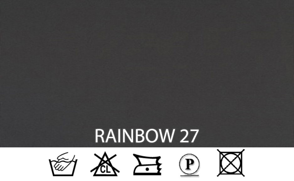 Potahová látka Rainbow je jemná, na dotek příjemná nenáročná na údržbu. Nevystavujte látku vysokým teplotám – nežehlete, neperte na mokro a nepoužívejte prostředky k bělení. Péče a čištění pouze se speciálními prostředky pro čalouněný nábytek.