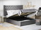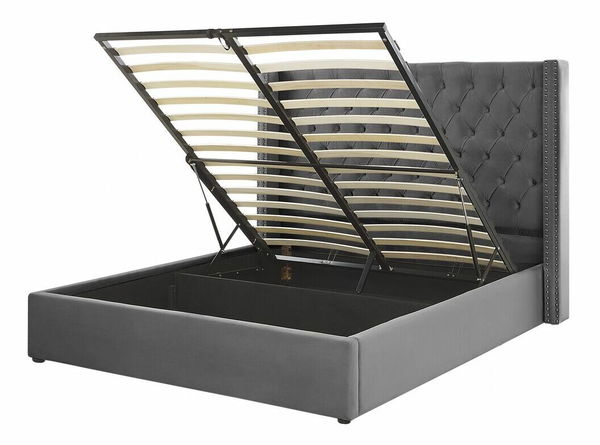 Tato čalouněná postel vnese do vaší ložnice eleganci a styl. Je dokonalým spojením vintage designu a moderního stylu, díky čemuž je dobrou volbou do ložnic v současném nebo retro stylu. Má pevnou dřevěnou konstrukci a čalounění z polyesterového sametu v šedém odstínu. Úložný prostor umístěný pod roštem postele je snadno dostupný a nabízí dostatek místa. Postel je ozdobena klasickým prošíváním s knoflíčky a kovovým lemováním.