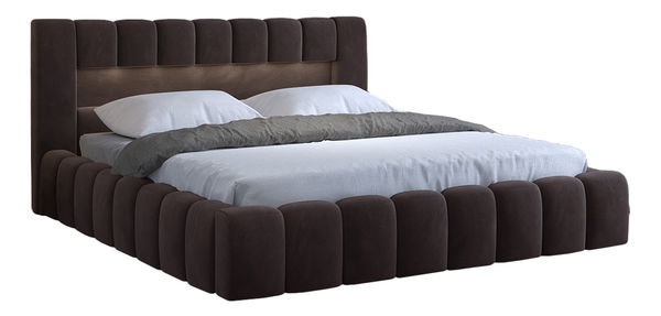 ZobrazitStylová manželská postel LUXA s dekoračním prošíváním ve vás vyvolá pocit luxusu a pohodlí. Postel má vysoké čelo se zabudovaným LED osvětlením, takže si můžete při ležení číst vaši oblíbenou knihu. Postel LUXA je čalouněna kvalitní látkou v tmavě hnědé barvě se vzhledem sametu. V ceně postele je zahrnut i výklopný kovový rošt s otevíráním od nohou, pod kterým se nachází prostorný úložný prostor. Úložný prostor je rozdělen na dvě části a poslouží k úschově ložního prádla, dek nebo sezónních věcí. Výška postele bez čela je 30 centimetrů. Postel je dodávána bez matrace. Zadní část čela není čalouněná.