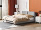 Vylepšete vzhled své ložnice touto elegantní postelí. Díky sametovému čalounění s jemným povrchem se hodí k mnoha stylům interiérového zařízení, nejlépe však bude ladit s interiéry ve skandinávském a vintage stylu. Hrubé čalouněné polštáře připevněné k čelu postele pomocí zipu zvyšují komfort při používání. Rám postele stojí na černých nohách, které krásně kontrastují s barvou čalounění.