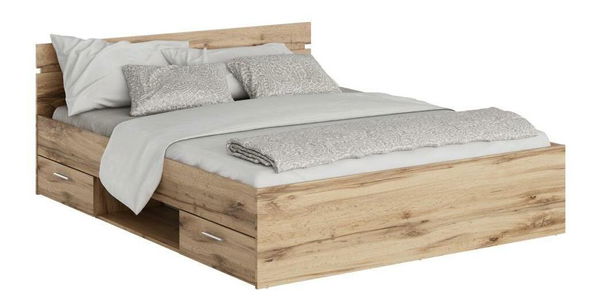 Postel Michigin se zásuvkami as odkládacím prostorem.