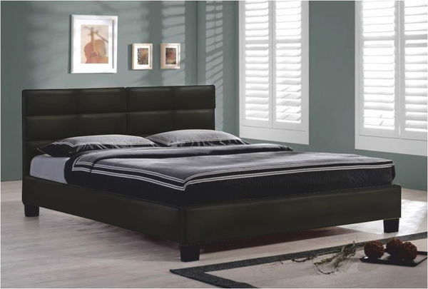 Krásná manželská postel v černém čalounění textilní kůží s lamelovým roštem s dřevěnými nohami v provedení wenge. Plocha lůžka 160 x 200 cm. K posteli doporučujeme zakoupit matraci s rozměrem 160 x 200 cm nebo 2 kusy rozměru 80 cm x 200 cm.