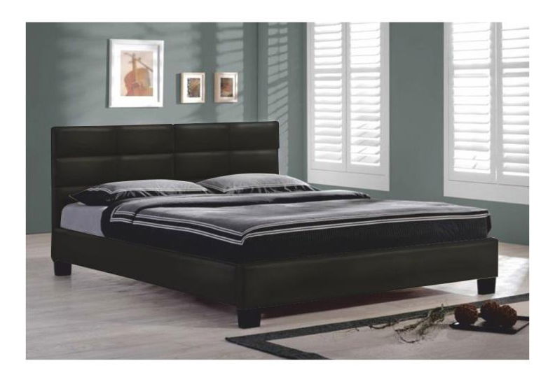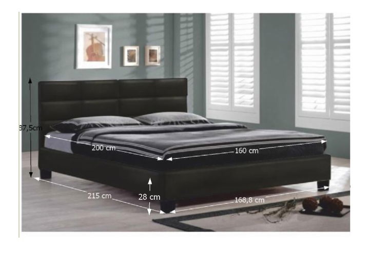 Krásná manželská postel v černém čalounění textilní kůží s lamelovým roštem s dřevěnými nohami v provedení wenge. Plocha lůžka 160 x 200 cm. K posteli doporučujeme zakoupit matraci s rozměrem 160 x 200 cm nebo 2 kusy rozměru 80 cm x 200 cm.