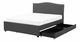 Dodejte svému interiéru jemný romantický nádech prostřednictvím této elegantní čalouněné postele. Její jednoduchý, ale velmi stylový design oživí vzhled každé ložnice zařízené v moderním nebo vintage stylu. Rám postele a vysoké čelo s tenkým ozdobným lemováním jsou čalouněny tmavě šedou látkou. Postel má čtyři prostorné úložné zásuvky vystlané netkanou textilií, díky kterým bude snadné udržet v ložnici pořádek.