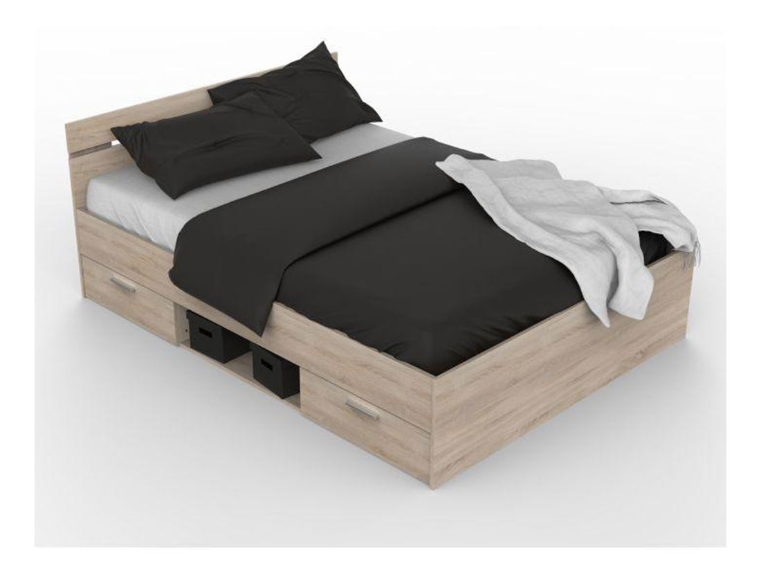 Elegantní postel Myriam s nádechem šarmu, je jako stvořená pro praktický domov. Své místo najde určitě v ložnici, ale také ve studentských či dětských pokojích. Využijte prostor v pokoji efektivně. Prostorná postel Myriam s plochou na spaní 160x200 cm disponuje dvěma zásuvkami a otevřeným odkládacím prostorem, které se nacházejí pod postelí. Zásuvky si umíte namontovat z pravé nebo levé strany. Vejdou se tam peřiny, hračky a vše, co nemusí zabírat místo ve skříni. Oblíbený, pevný a odolný materiál DTD laminovaná v elegantním provedení dub sonoma šikovně zapadne do všech interiérů, kde navodí stylové teplo a kouzlo domova.