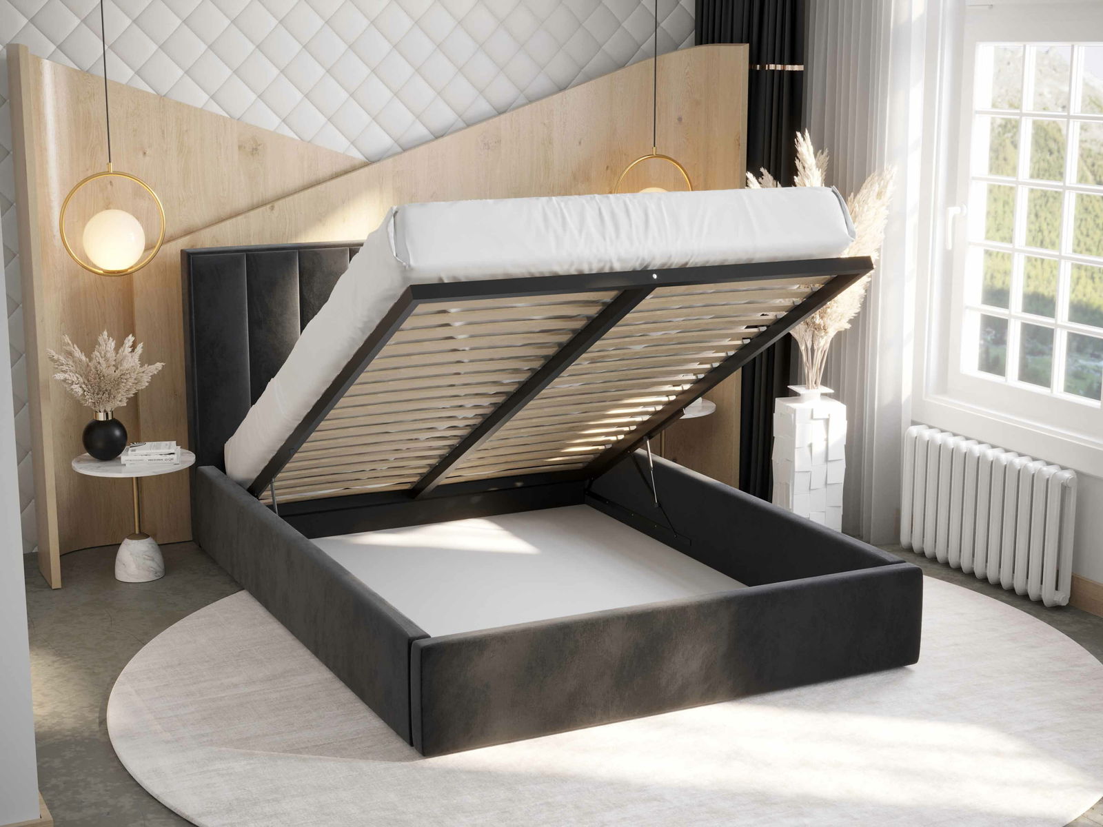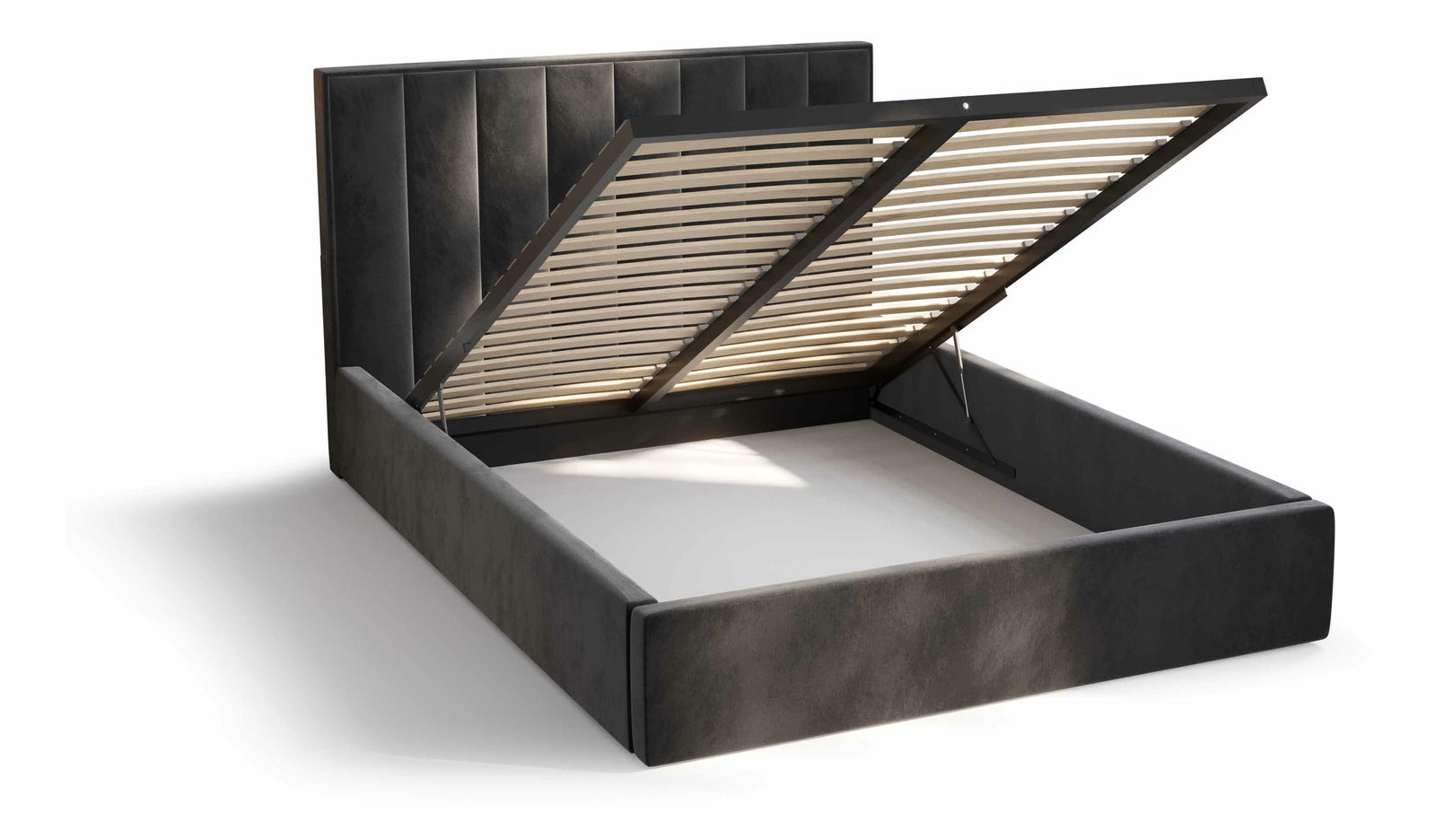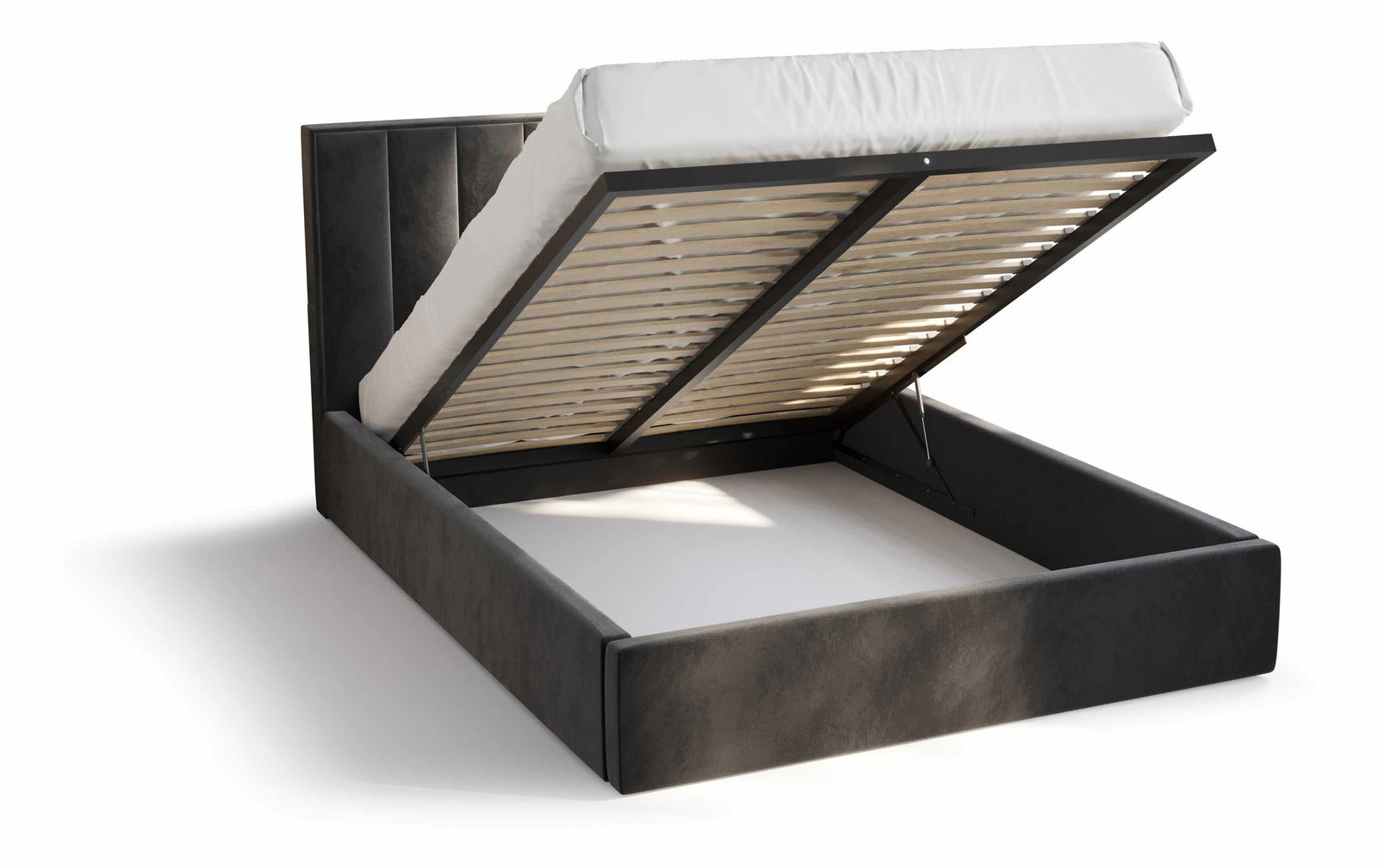 ZobrazitManželská postel ze série Ocie s plasticky řešeným čelem postele díky vertikálním záševkům v tkanině. Uvnitř postele naleznete rošt i úložný prostor na lůžkoviny. Nabízíme v několika barevných i rozměrových variantách.
