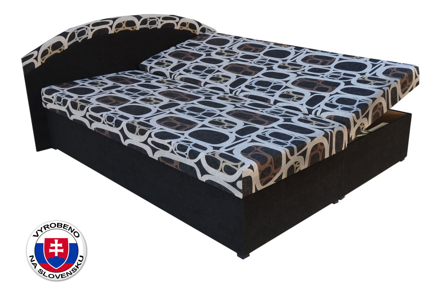 Praktická manželská postel s velkým úložným prostorem, který se otevírá zboku. Korpus postele a čelo jsou zhotoveny z kvalitní 18 mm DTD (dřevotřísková deska). Matrace je vyrobena z PUR pěny vyšší gramáže. Postel je postavena na 3 cm plastových nožkách.
